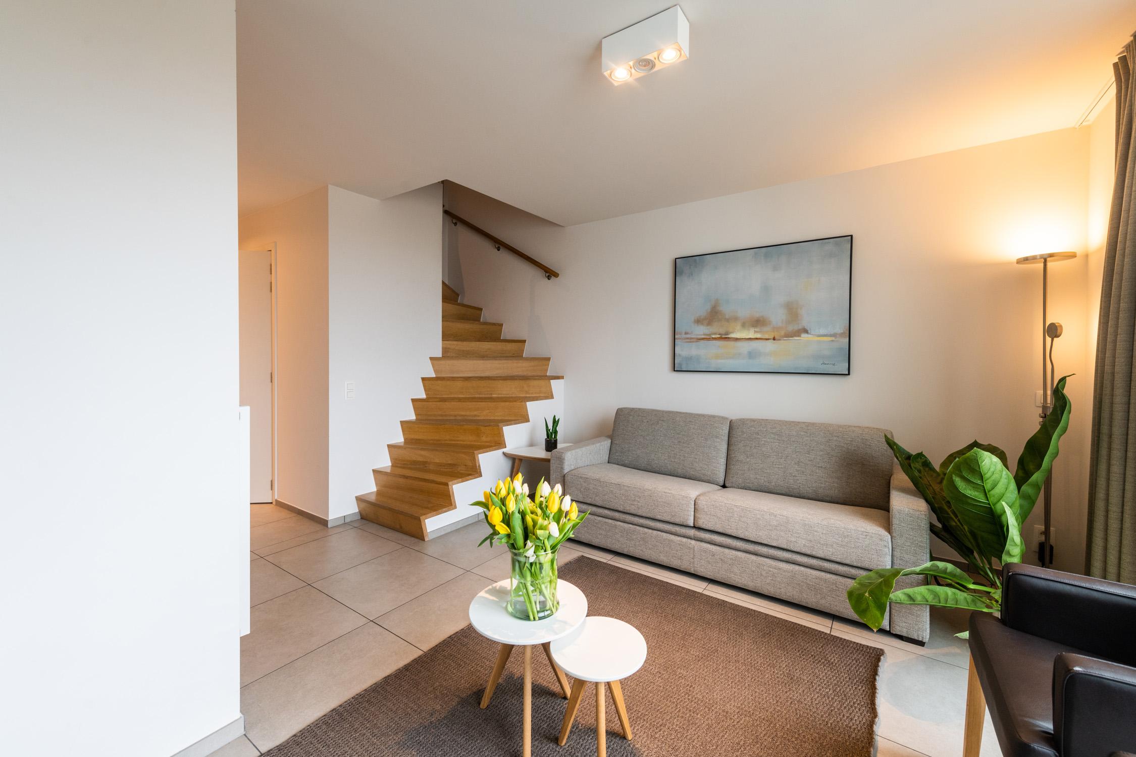 Diese trendige Maisonette-Wohnung mit Hotelservice hat 2 Schlafzimmer, bietet Platz für 4 bis 6 Personen und liegt in den Dünen von Westende, 300 m vom Meer entfernt.